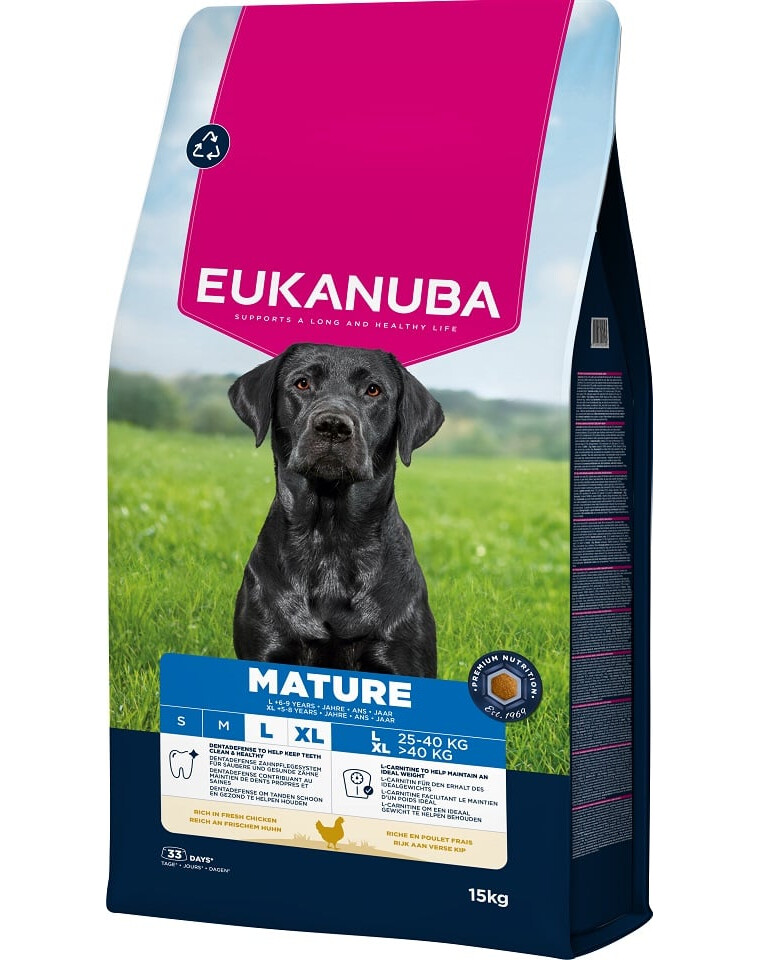 Visavertis ėdalas senyviems didžiųjų veislių (25-40 kg) šunims nuo 6 metų amžiaus ir milžinų veislių (>40 kg) šunims nuo 5 metų.