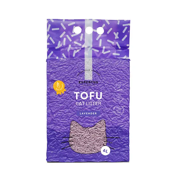 Expertus levandų kvapo tofu kraikas – 100 % natūralus, draugiškas gamtai, nedulkantis ir biologiškai suyrantis. Pagamintas iš maistinių sojos pupelių liekanų ir kukurūzų burbuolių, efektyviai sugeriantis skysčius ir sušokantis į kietus gumulėlius.