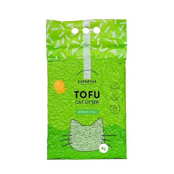Expertus žaliosios arbatos kvapo tofu kraikas – 100 % natūralus, draugiškas gamtai, nedulkantis ir biologiškai suyrantis. Pagamintas iš maistinių sojos pupelių liekanų ir kukurūzų burbuolių, efektyviai sugeriantis skysčius ir sušokantis į kietus gumulėlius.